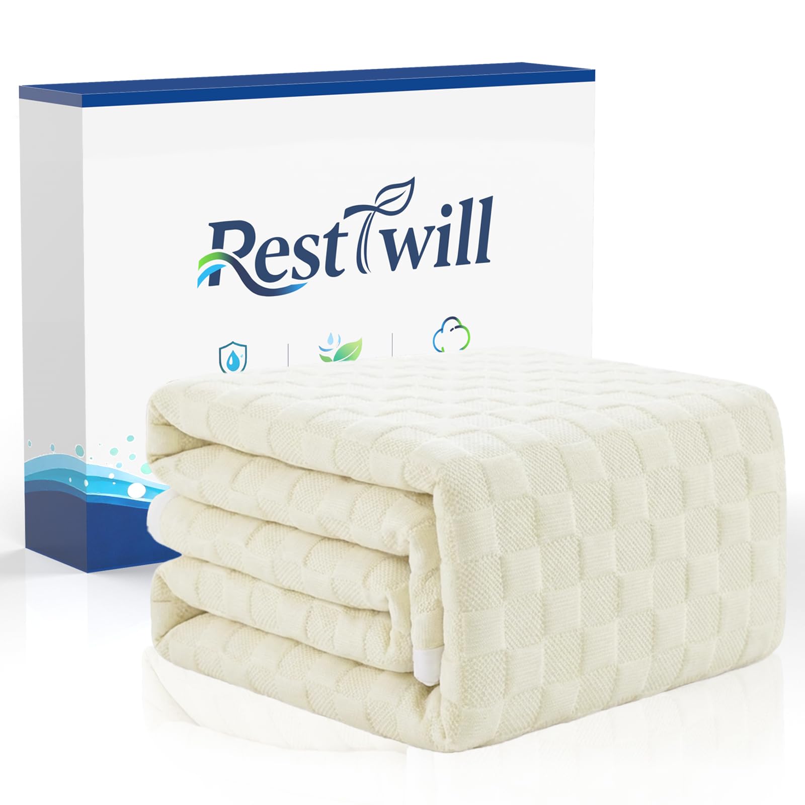 RestTwill Waterproof Mattress Protector with Deep Pocket, 3D Waffle Bed Cover, Soft Organic Cotton Blend, Moisture-Wicking, Noiseless (White, Queen) โ€” $49.99 | Nab 'n Buy