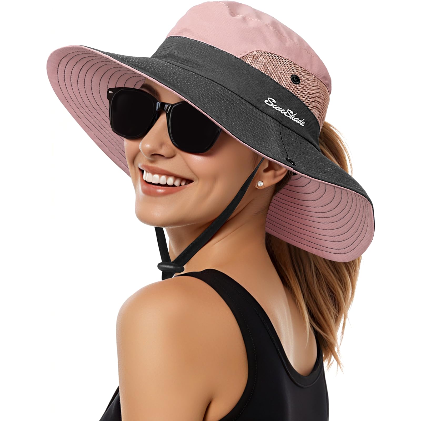 Sun Hats for Women, Wide Brim Beach Bucket Hats with Ponytail Hole, Outdoor UV Protection Foldable Fishing Hat Cooling Mesh Hiking Bucket Hat, Pink — $13.98 | Nab 'n Buy
